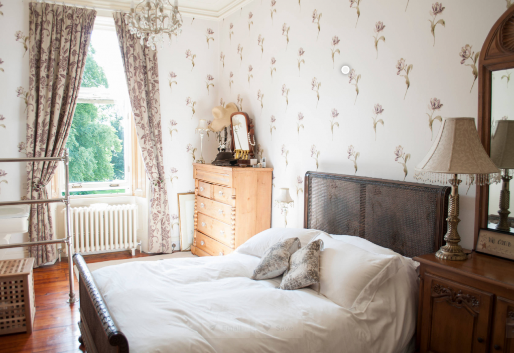ყვავილებთ მორთული შპალერი და ნათელი კედლები