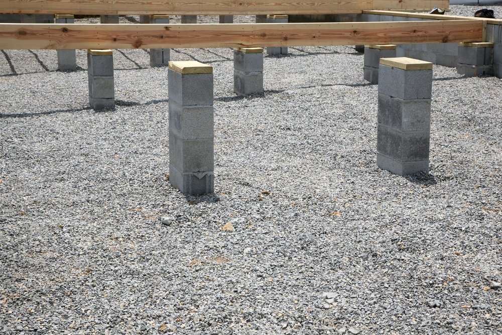 - სახლი ეფუძნება ბეტონის ხიმინჯებს, რომლებიც გადანაწილებულია მიწაში მთელს ფართობზე.