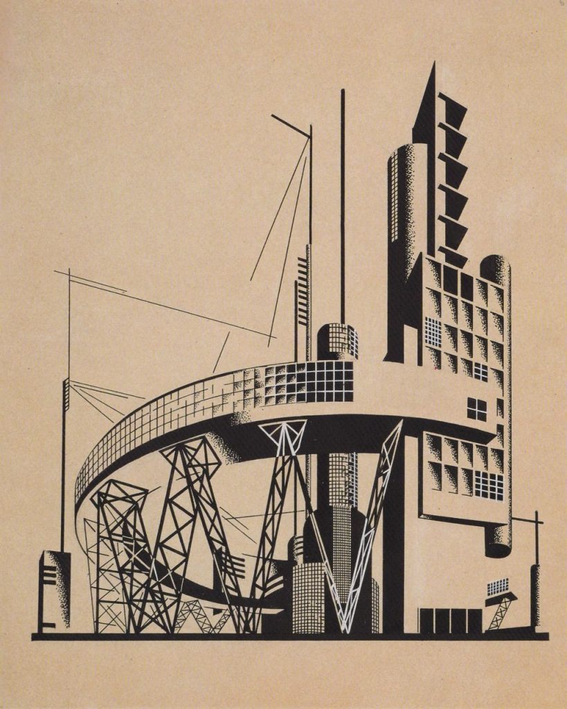 ალექსანდრ რადჩენკომ კი რადიოს სადგურის ექსპერიმენტული დიზაინი წარადგინა, რომელიც მრავალ გეომეტრიულ ფიგურას აერთიანებდა და თავისი უსწორმასწორობით გამოირჩეოდა.