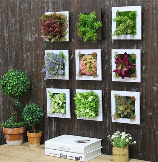 მაგალითად, სუკულენტები ამისათვის ძალიან კარგი ვარიანტია. ფორმასაც არ კარგავს და ‘უცნაურ’ პირობებსაც მარტივად უძლებს. უცნაურად ჟღერს კედელზე დამაგრებული მცენარეები, მაგრამ სწორედ ამ უცნაურობის გამო, საბოლოო ჯამში, ძალიან საინტერესო ვიზუალი იქმნება.