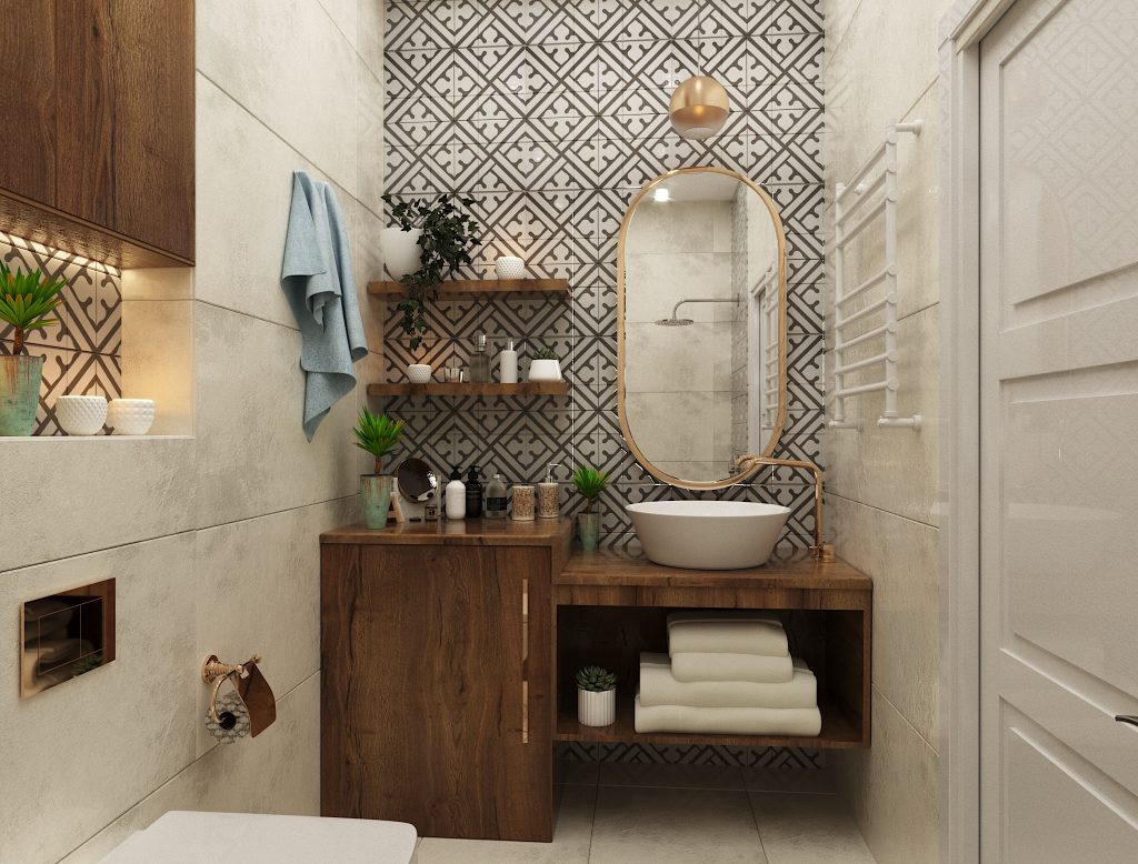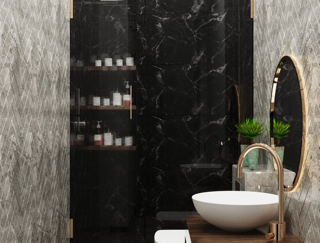 მხოლოდ ჩაშენებულ თაროზე ნუ შეჩერდებით. ოთახის მასშტაბით სხვადასხვა ადგილებსაც შემატეთ ისეთი ელემენტები, რომლებიც ოთახს როგორც კომფორტს, ასევე სილამაზესაც შემატებენ. მაგალითად: საშხაპეში ჩაშენებული ლამაზი ზედაპირის მქონე ჩამოსაჯდომი. სააბაზანოსაც დაუმშვენეთ გვერდი მარმარილოს ან დამუშავებული ქვის ზედაპირის მქონე თაროთი.