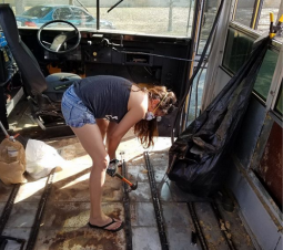 ავტობუსი წლები ფლორიდის ერთ-ერთ სკოლას ემსახურებოდა და კორპუსი განადგურებული და ჟანგიანი იყო. ინტერიერშიც ასეა, სჯობს ახალი სახლი მოაწყო ვიდრე ძველი სახლის რემონტს მოკიდო ხელი.