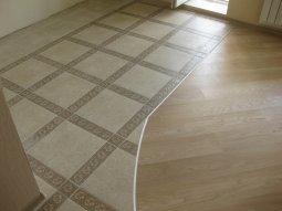 ჩვენ გირჩევთ, რომ ეს გადაბმა, ქვევით ნაჩვენები გადაბმით ჩავანაცვლოთ, თუმცა ამ შემთხვევაში პარკეტის და კერამოგრანიტის გადაბმაა ნაჩვენები, რაც შეუძლებელია ლამინატის შემთხვევაში.