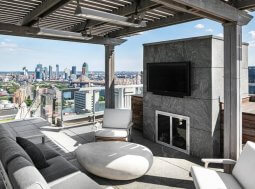 30 სართულიან შენობაში, 2 სართულიანი ტერასით მოწყობილი სახლი სადა და გემოვნებიანი ინტერიერით გამოირჩევა, ჯენიფერის გემოვნება ზუსტად ჩანს ამ ლამაზ კედლებში.