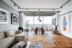 როგორ ფიქრობთ, ამ ოთახში პატარა მაგიდა როგორი იქნებოდა?, რა თქმა უნდა, არასასიამოვნო სანახავი, თუმცა არც ძალიან დიდი მაგიდა დაამშვენებდა ამ ინტერიერს.
