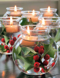 სანთელი წყალში არ იძირება და ულამაზეს ჩრდილს ქმნის, ამიტომ ინტერიერის გადასახალისებლად და მეტი სიმყუდროვის შემოსატანად სანთლები გამოვიყენოთ. ერთი ზომის რამდენიმე ჭიქაში ან ქილაში წყალი ჩაასხით, შეგიძლიათ შიგნით რაიმე ბრჭყვიალა დეკორაციებიც ჩაყაროთ და შემდეგ ნელა დადეთ სანთელი.