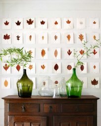 შეაგროვეთ ჩამოცვენილი ფოთლები, რამდენიმე სხვადასხვა ტონალობის გოგრა და სახლის სხვადასხვა კუთხეში ლამაზად მოაწყვეთ.
