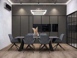 შავი და ნაცრისფერი, ინტერიერში მოთხოვნადი ფერებია. ნაცრისფერი დღევანდელ ინტერიერში ხშირად გამოიყენება და სამზარეულოს მოსაწყობად ეს ფერიც ერთ-ერთი საუკეთესოა.